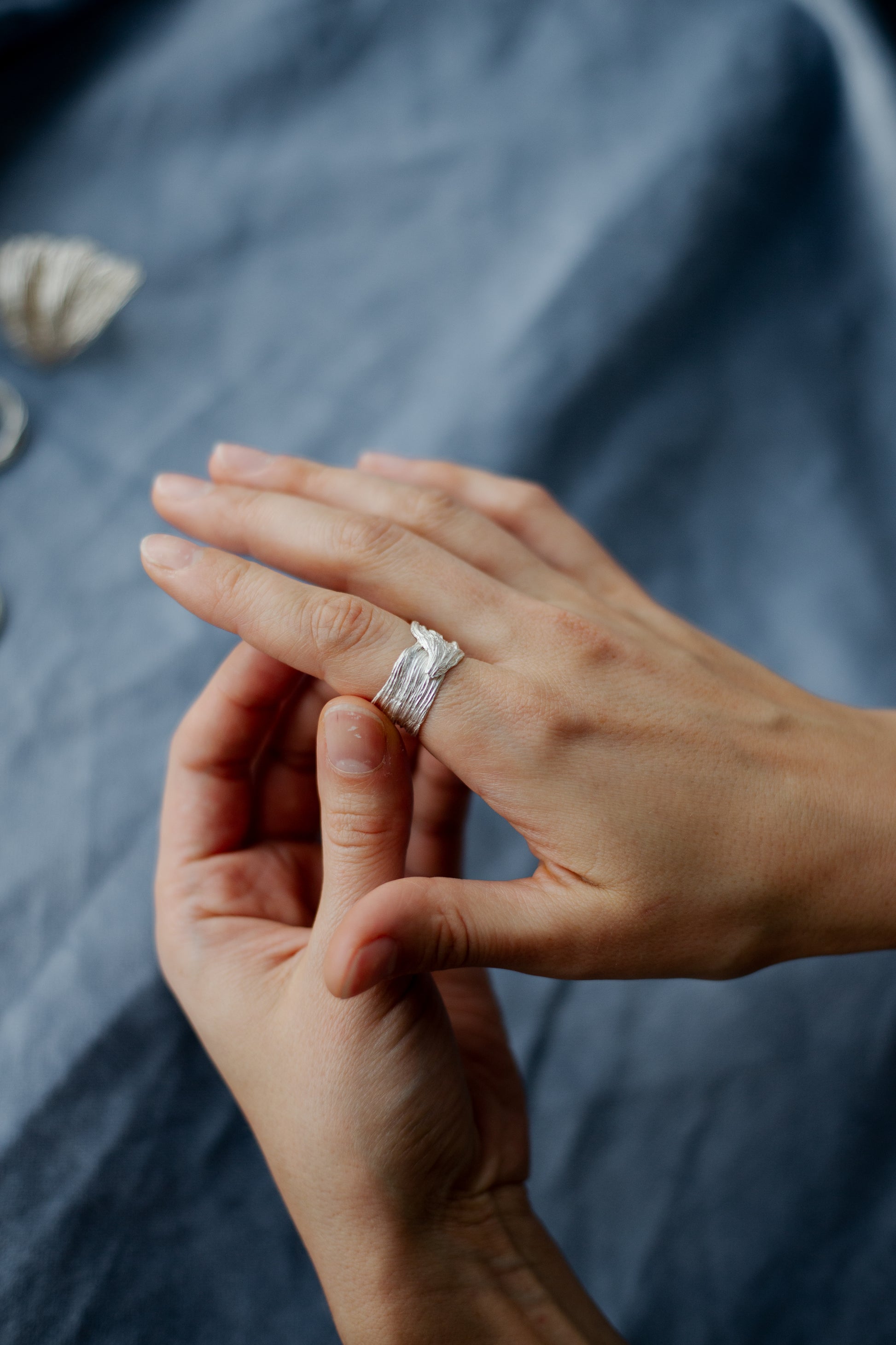 Žiedas žymimas kaip vienetinis, nes iš tiesų sunku pakartoti identišką raštą, bet jei domina, susisiekite, bus sukurtas panašus.
