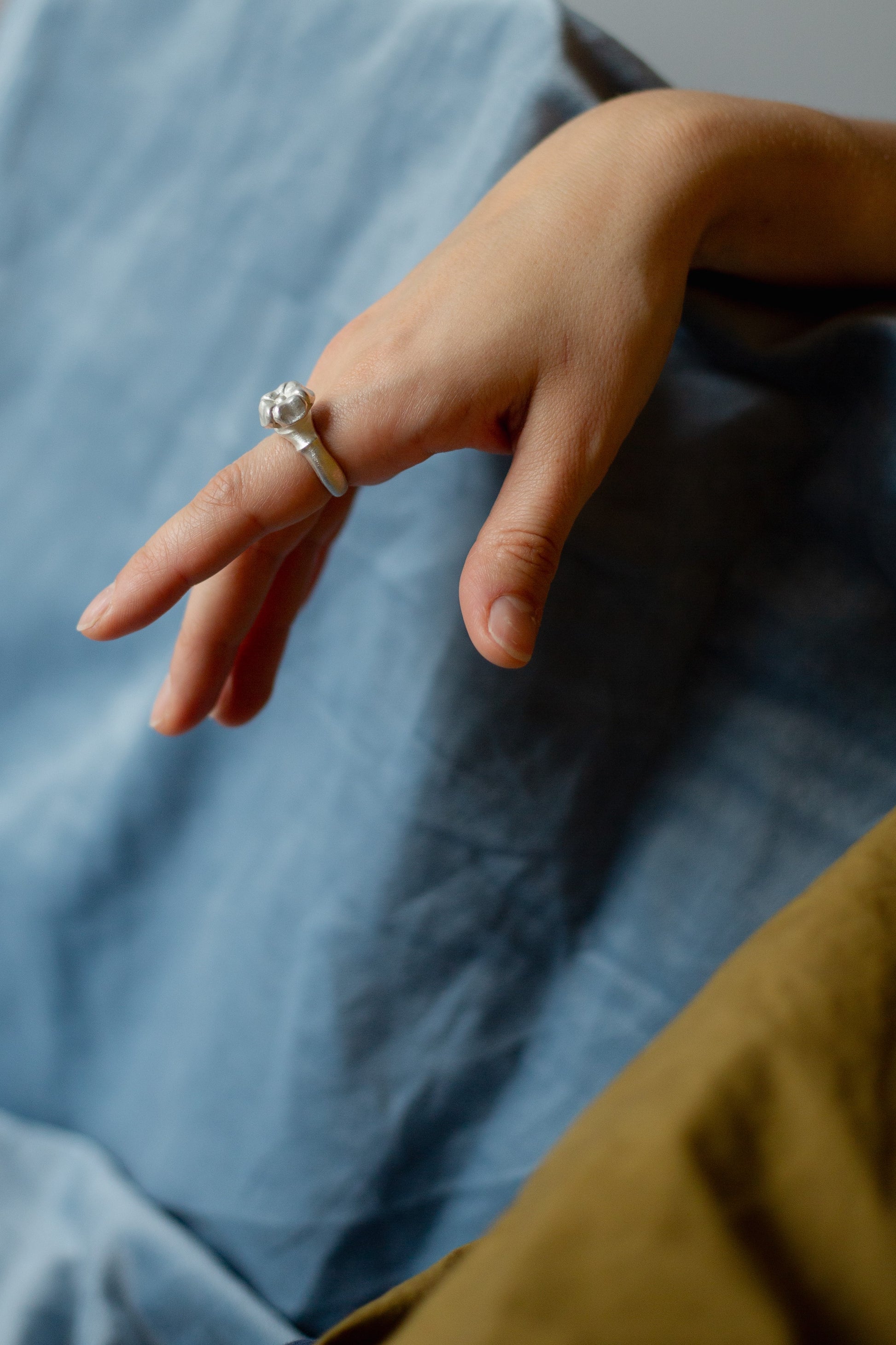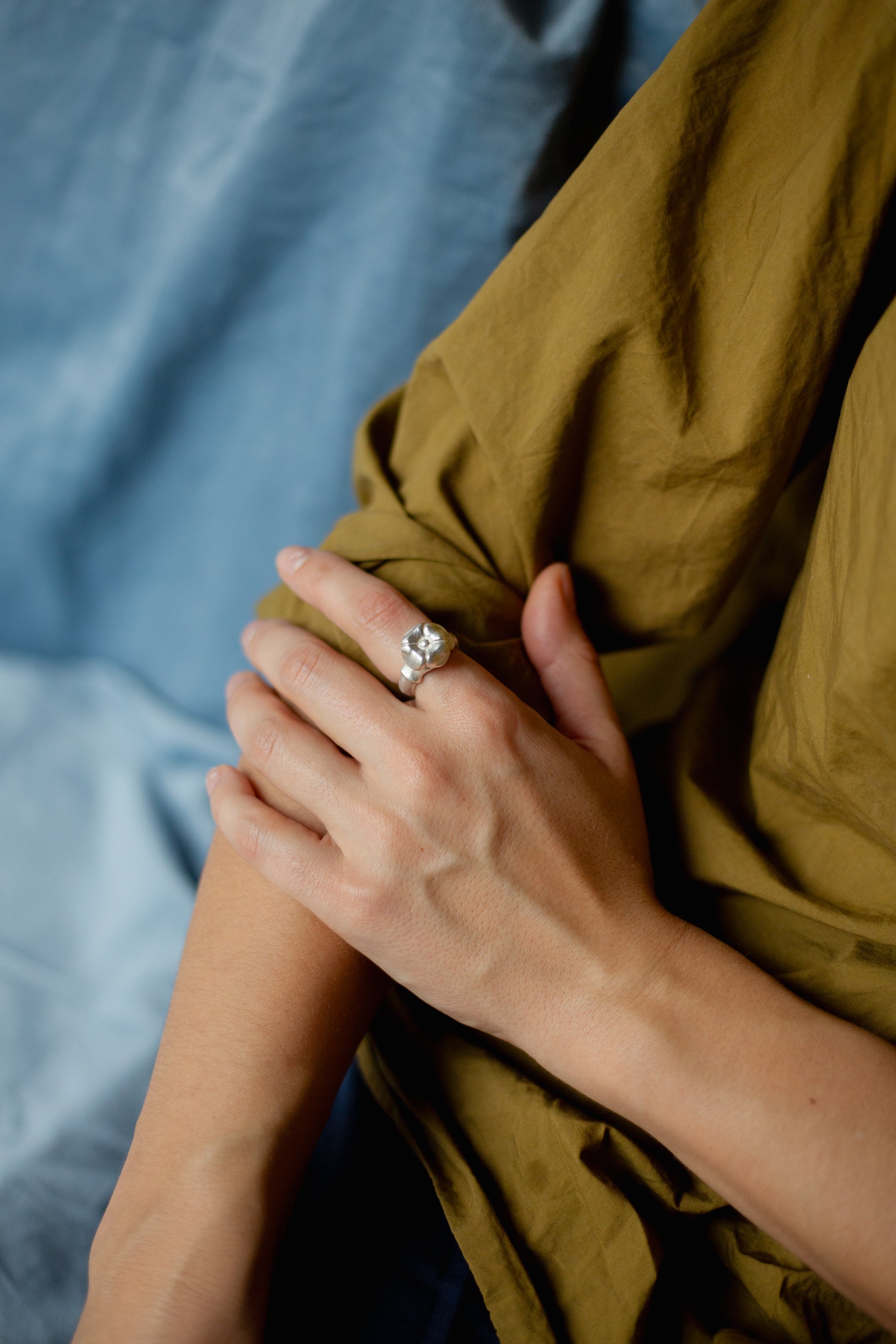 Kuriant šį modelį darkart teko įsitikinti, kokia sudėtinga juvelyrinė forma yra žiedas. Norisi, kad jis veiktų kaip mažas skulptūrinis kūrinys, į kurį galima žiūrėti iš trijų pusių – iš viršaus, iš priekio ir iš šono – ir visos trys pusės turi būti apgalvotos, tarsi kuriant tris skirtingus darbus, apsijungiančius į vieną.